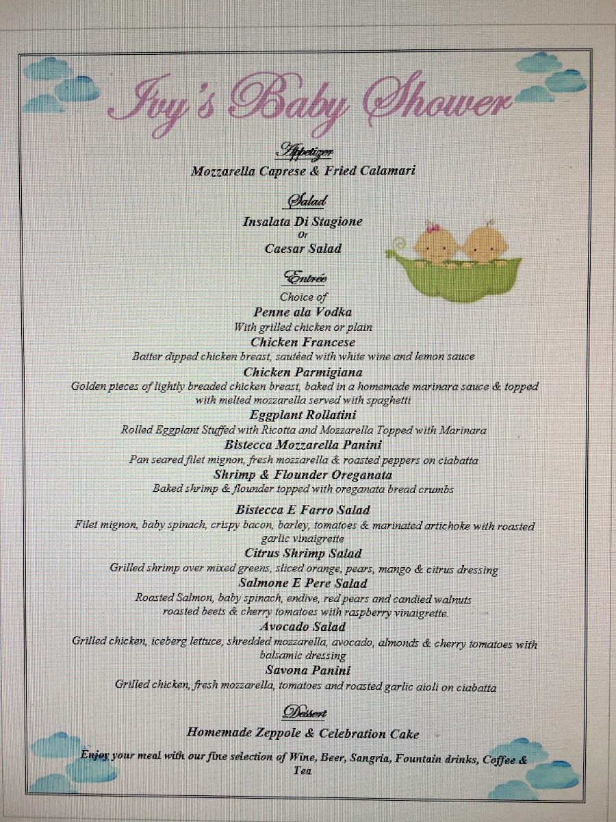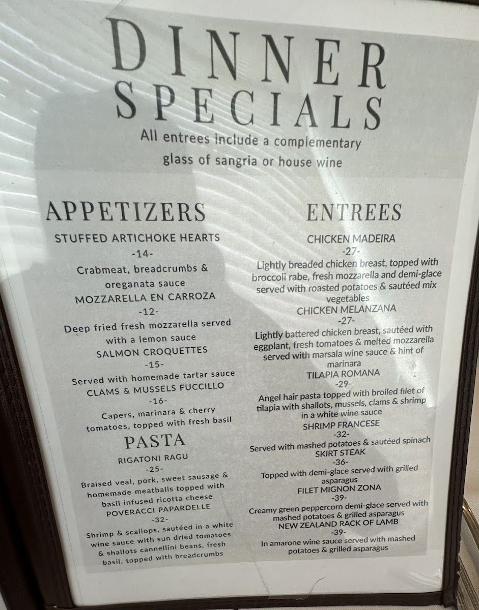 Zona Italian Restaurant Menu