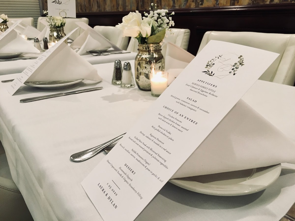 Main courses include a variety of proteins and sides. Highlights include grilled meats such as rack of lamb and filet mignon, as well as seafood offerings like Tuscani salmon served with mashed potatoes. The menu also features value meals and catering options, including family-style turkey and ham meals for holidays.